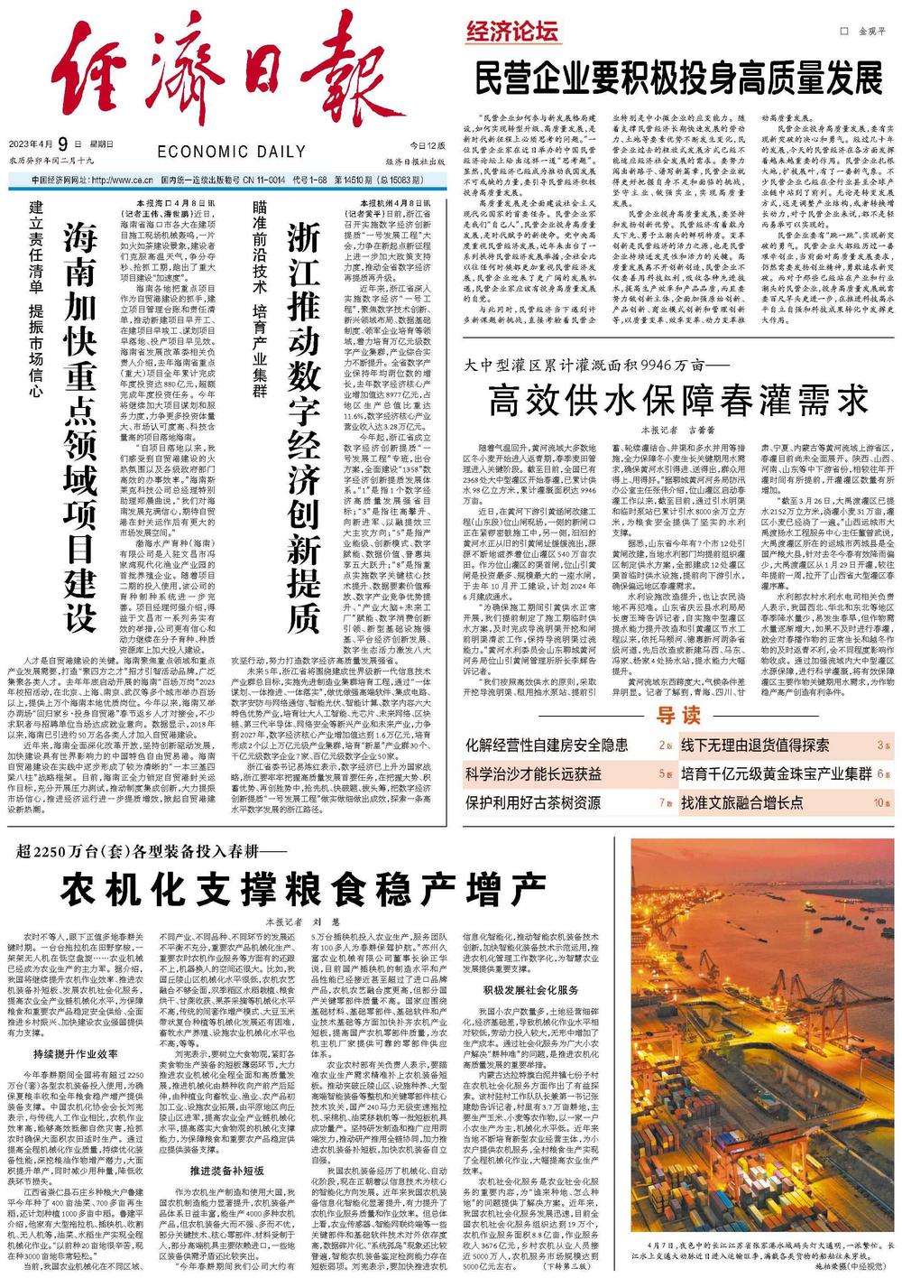 今年起,浙江省成立数字经济创新提质“一号发展工程”专班,出台方案,全面建设“1358”数字经济创新提质发展体系。“1”是指1个数字经济高质量发展强省目标;“3”是指往高攀升、向新进军、以融提效三大主攻方向;“5”是指产业能级、创新模式、数字赋能、数据价值、普惠共享五大跃升;“8”是指重点实施数字关键核心技术提升、数据要素价值释放、数字产业竞争优势提升、“产业大脑+未来工厂”赋能、数字消费创新引领、新型基础设施强基、平台经济创新发展、数字生态活力激发八大攻坚行动,努力打造数字经济高质量发展强省。