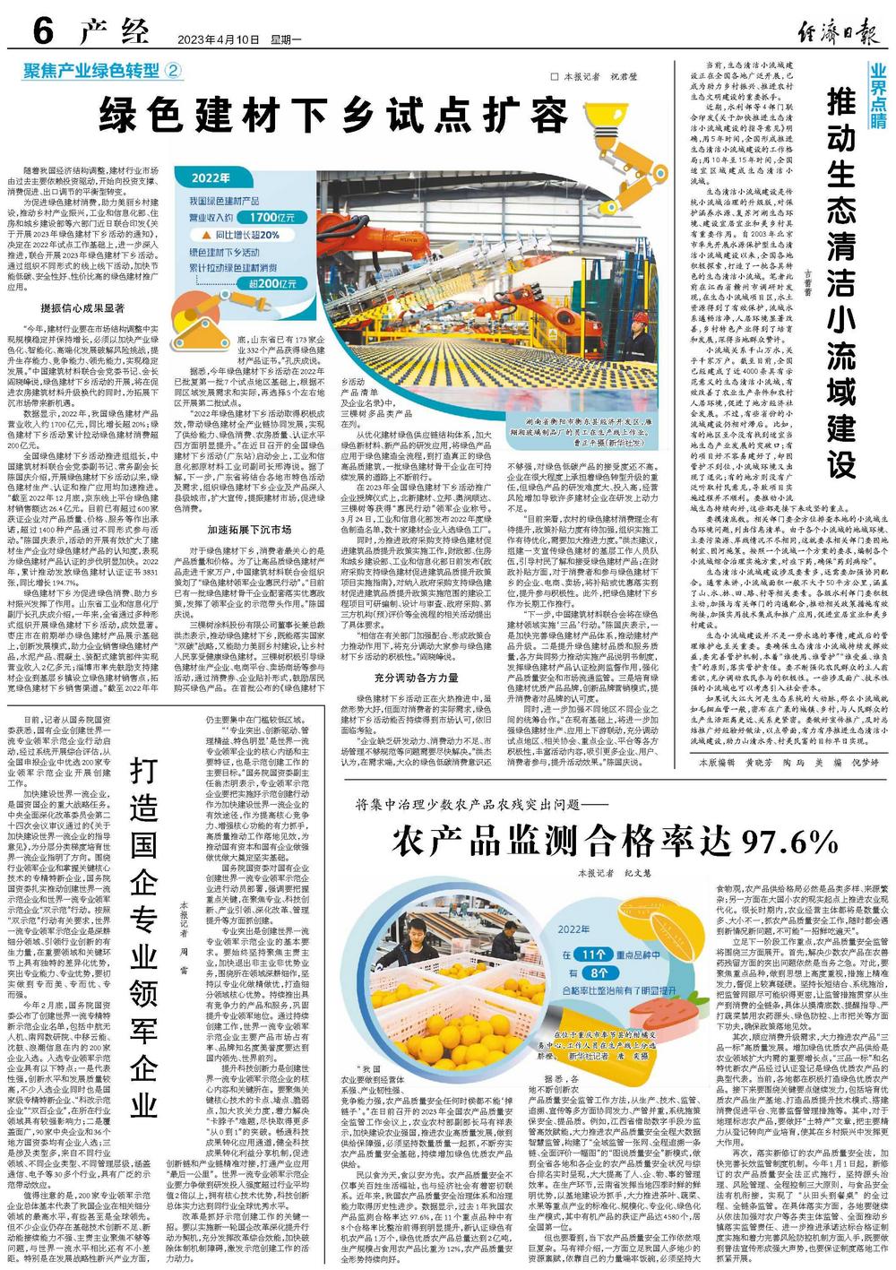 数据显示,2022年,我国绿色建材产品营业收入约1700亿元,同比增长超20%;绿色建材下乡活动累计拉动绿色建材消费超200亿元。