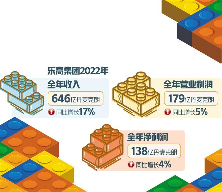 乐高集团近日发布的2022年度财务报告显示,集团全年收入同比增长17%,达646亿丹麦克朗(包括外币汇率影响)。全年营业利润较2021年的170亿丹麦克朗增长5%,达179亿丹麦克朗。净利润达138亿丹麦克朗,较2021年133亿丹麦克朗增长4%。