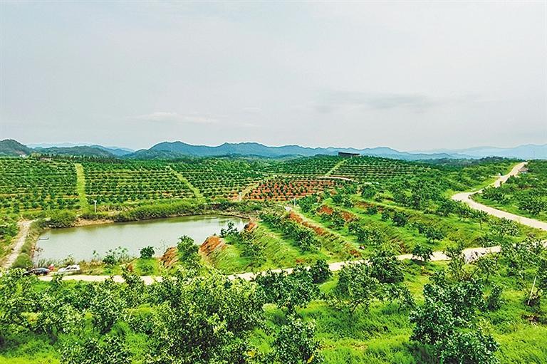 题图 江西省赣州市信丰县安西镇,昔日荒山荒坡已成为梯带环绕、脐橙飘香的中国赣南脐橙产业园。 本报记者 吉蕾蕾摄