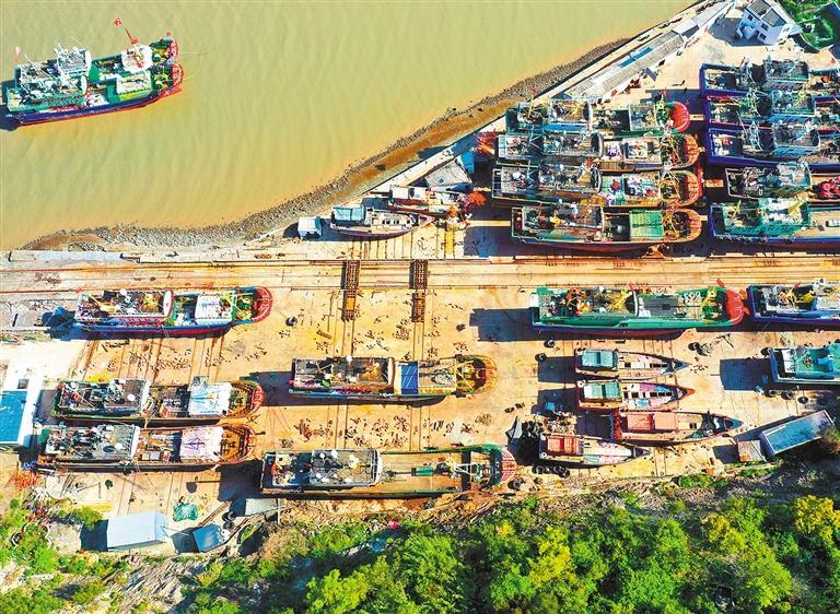 近日,浙江省玉环市坎门街道灯塔船舶修造厂的工人们正加紧维修渔船。目前,该船厂接到渔船维修的订单已排到8月份,生意红火。段俊利摄(中经视觉)