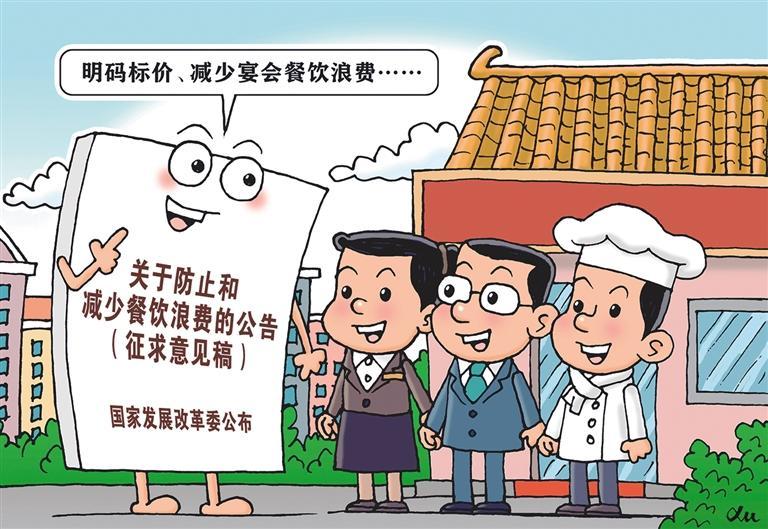 为弘扬中华民族传统美德,提倡节俭、反对浪费,保障国家粮食安全,树立文明新风尚,国家发展改革委近日公布《关于防止和减少餐饮浪费的公告(征求意见稿)》,从八个方面提出一系列举措推进反餐饮浪费工作落实落细,包括严格明码标价、推行明白标量、减少宴会餐饮浪费、完善用餐评价体系等。我国粮食供需长期处于紧平衡状态,一粥一饭当思来之不易,我们不能丢掉勤俭节约这个传家宝,而应将其融入现代文明的生活点滴之中。遏制粮食浪费要从每个人每一餐做起,更要拿出管用的实招,加强对餐饮行业浪费的监管,防止奢靡浪费之风重回餐桌。(时 锋)