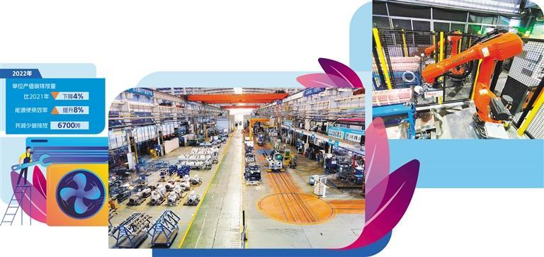 数据显示,2022年,重庆美的单位产值碳排放量比2021年下降4%,能源使用效率提升8%,共减少碳排放6700吨。
