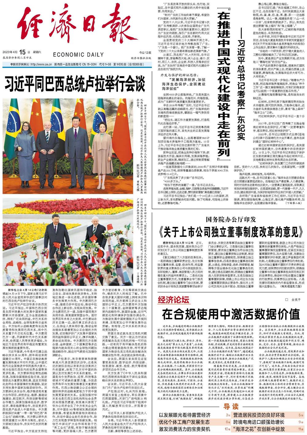新华社北京4月14日电(记者郑明达)4月14日下午,国家主席习近平在人民大会堂同来华进行国事访问的巴西总统卢拉举行会谈。