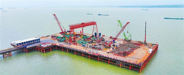 4月15日,由中交二航局参建的江苏张靖皋长江大桥关键控制性工程——南航道桥南主塔桩基施工完成。