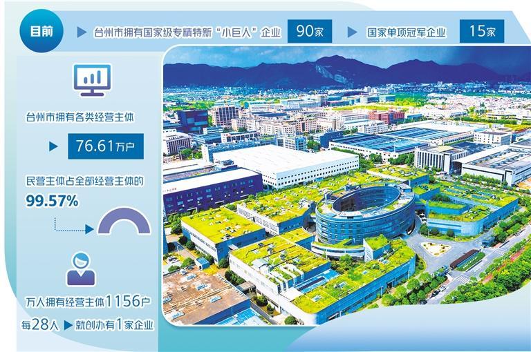 目前,台州市拥有各类经营主体76.61万户,民营主体占全部经营主体的99.57%;万人拥有经营主体1156户,每28人就创办有1家企业。