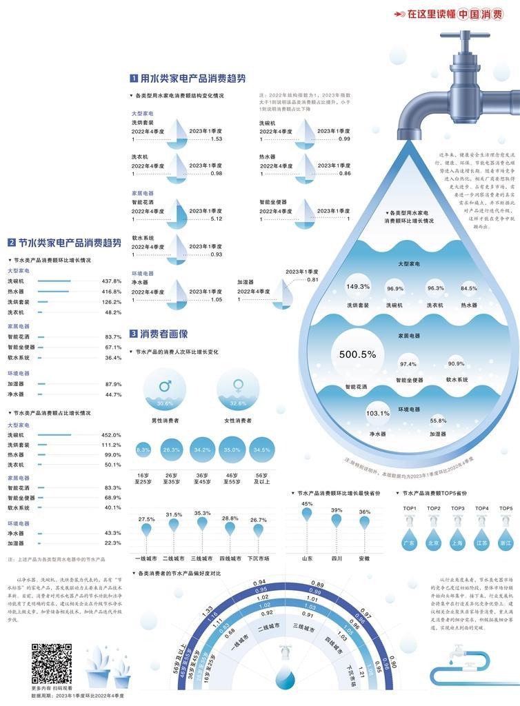 另一方面,从消费者认知来看,节水家电产品已经从原来的“选配型”变成了“刚需型”。其中,横向用水场景逐渐从原来的日常“喝净水”场景,发展扩充到洗菜做饭等“用净水”场景;纵向用水需求则在健康、安全的基础上,升级至多功能产品。相关企业应加大场景化产品研发力度,不断满足消费者的多元化需求。