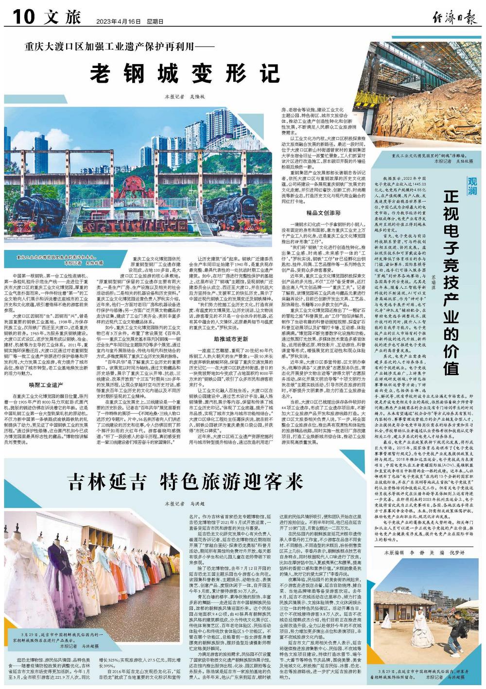当前,大渡口区已梳理出保存条件较好的44项工业遗存,形成了工业遗存项目库,不断加大工业旅游产品开发和旅游线路打造。大渡口区文旅委相关负责人说,下一步,将全面整合工业旅游点位,推出具有观赏性和体验性的旅游精品线路,同时实施一批老旧厂房改建项目,打造工业焕新城市综合体,推动工业旅游实现高质量发展。