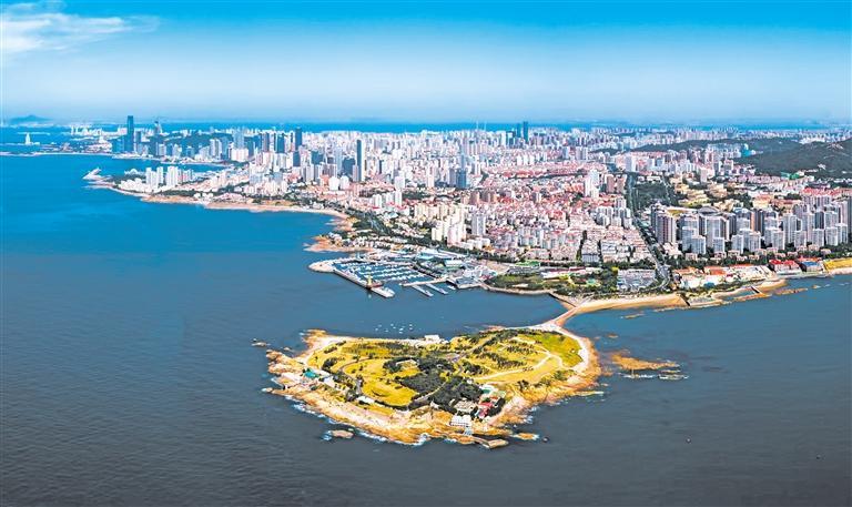 4月14日,开展生态修复后的山东省青岛市崂山区小麦岛,碧海清波,景色怡人。近年来,当地围绕“绿色生态麦岛,蓝色健康生活”目标,加快修复自然地貌,打造生态绿岛,昔日小渔村实现华丽转身,成为游客热门打卡地。刘明元摄(中经视觉)