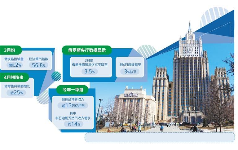 普京表示,近期俄经济展现积极趋势:一是国内经济循环向好。统计数据显示,4月初以来,俄零售贸易额增长近25%。二是运输量加速扩大,3月份俄铁路运输量增长2%,到4月初该指标达3.6%,且国内和国际运输均呈增长态势。三是市场情绪乐观,3月份俄经济景气指数达56.8%,处于历史较高水平。这直接说明了俄企业态度积极乐观,有理由相信俄经济将继续回暖。