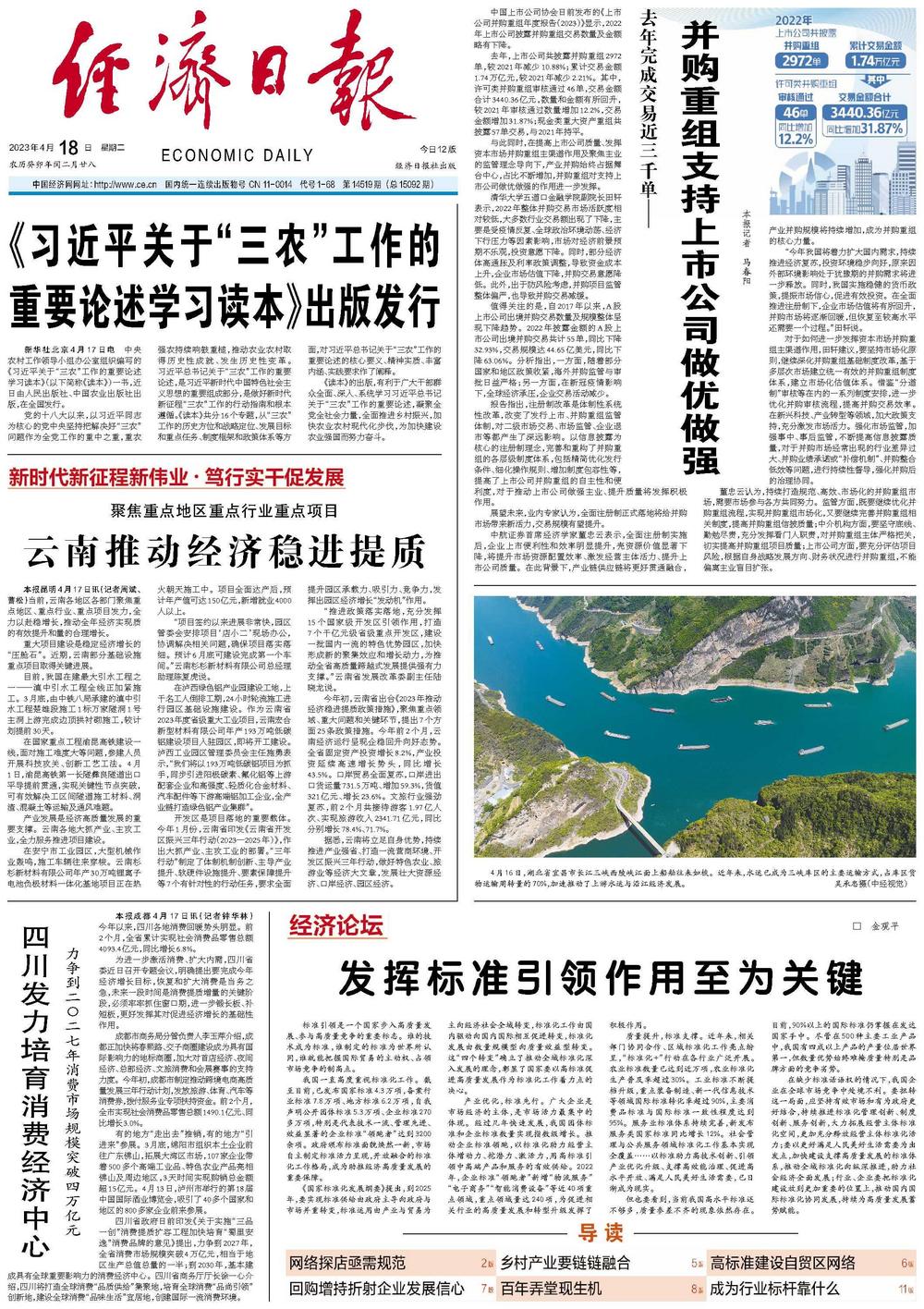 今年初,云南省出台《2023年推动经济稳进提质政策措施》,聚焦重点领域、重大问题和关键环节,提出7个方面25条政策措施。今年前2个月,云南经济运行呈现企稳回升向好态势。全省固定资产投资增长8.2%,产业投资延续高速增长势头,同比增长43.5%。口岸贸易全面复苏,口岸进出口货运量731.5万吨、增加59.3%,货值321亿元、增长23.6%。文旅行业强劲复苏,前2个月共接待游客1.97亿人次、实现旅游收入2341.71亿元,同比分别增长78.4%、71.7%。