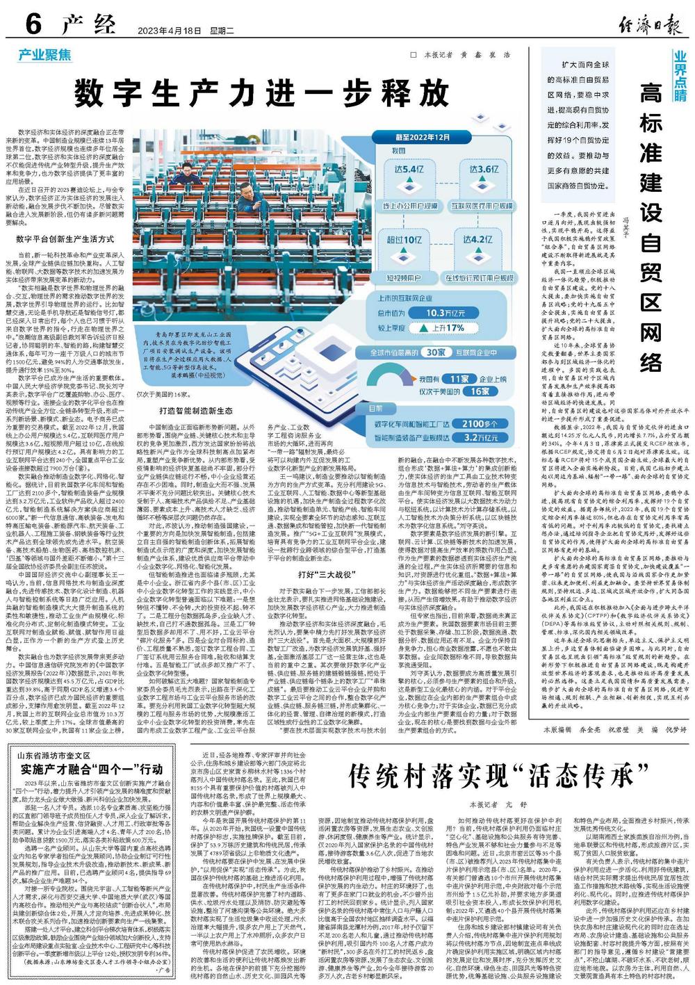数实融合推动制造业数字化、网络化、智能化。据统计,目前我国数字化车间和智能工厂达到2100多个,智能制造装备产业规模达到3.2万亿元,工业软件产品收入超过2400亿元,智能制造系统解决方案供应商超过6000家。“新一代信息通信、高铁装备、发电和特高压输电装备、新能源汽车、航天装备、工业机器人、工程施工装备、钢铁装备等行业技术产品达到全球领先或先进水平。航空装备、高技术船舶、生物医药、高档数控机床、‘四基’等领域与国外差距不断缩小。”第十三届全国政协经济委员会副主任苏波说。