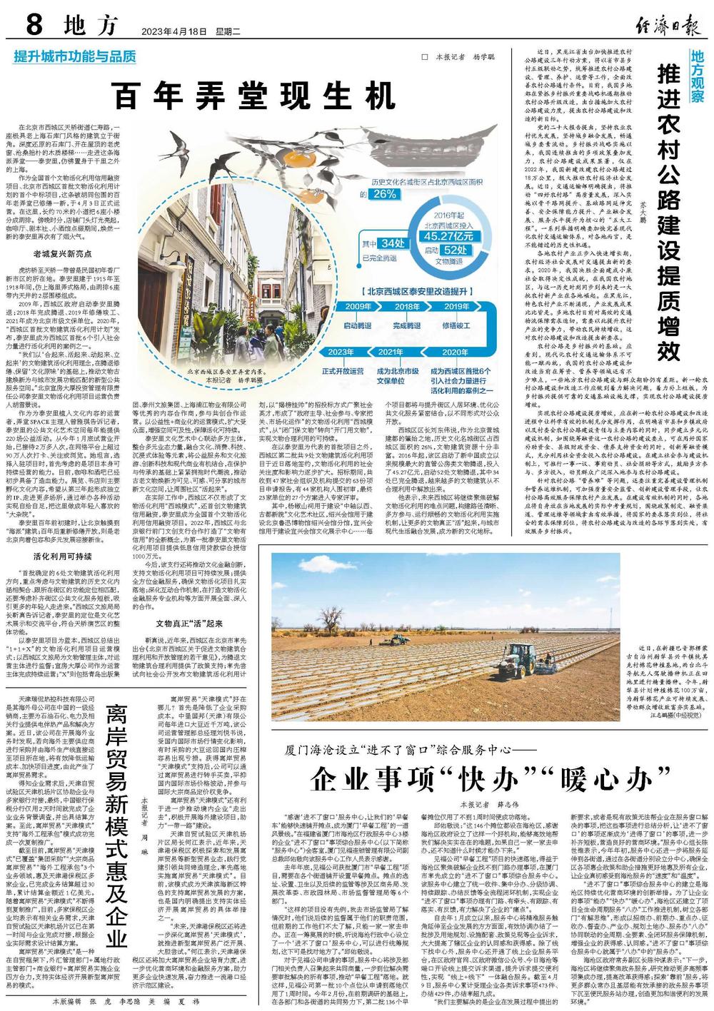 靳真说,近年来,西城区在北京市率先出台《北京市西城区关于促进文物建筑合理利用和开放管理的若干意见》,为腾退文物建筑合理利用提供了政策支持;率先尝试向社会公开发布文物建筑活化利用计划,以“揭榜挂帅”的招投标方式广聚社会英才,形成了“政府主导、社会参与、专家把关、市场化运作”的文物活化利用“西城模式”,从“闭门保文物”转向“开门用文物”,实现文物合理利用的可持续。