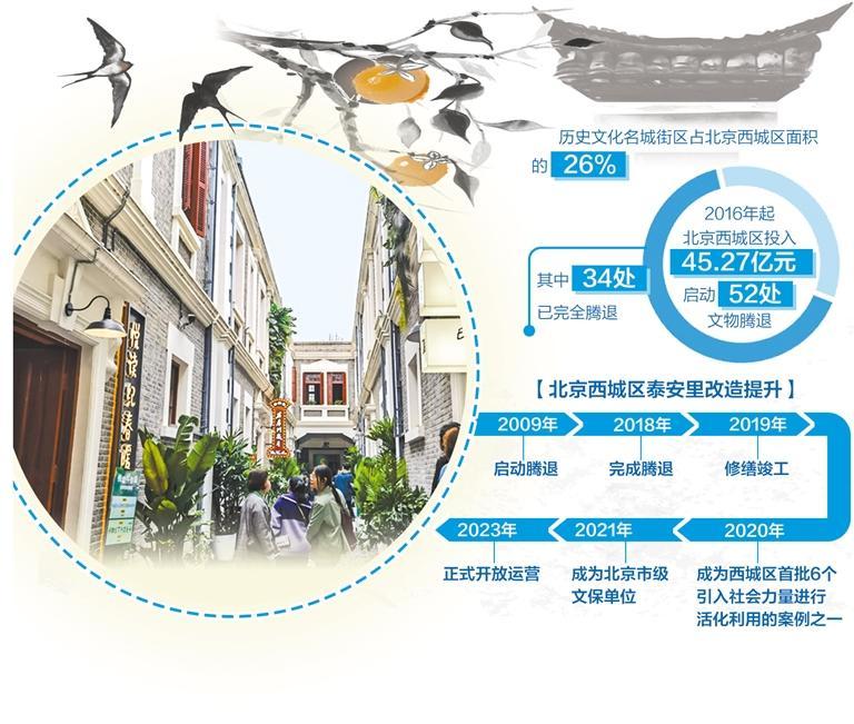 在实际工作中,西城区不仅形成了文物活化利用“西城模式”,还首创文物建筑信用融资,泰安里成为全国首个文物活化利用信用融资项目。2022年,西城区与北京银行前门文创支行合作打造了“文物有信用”的全新概念,为第一批泰安里文物活化利用项目提供低息信用贷款综合授信1000万元。