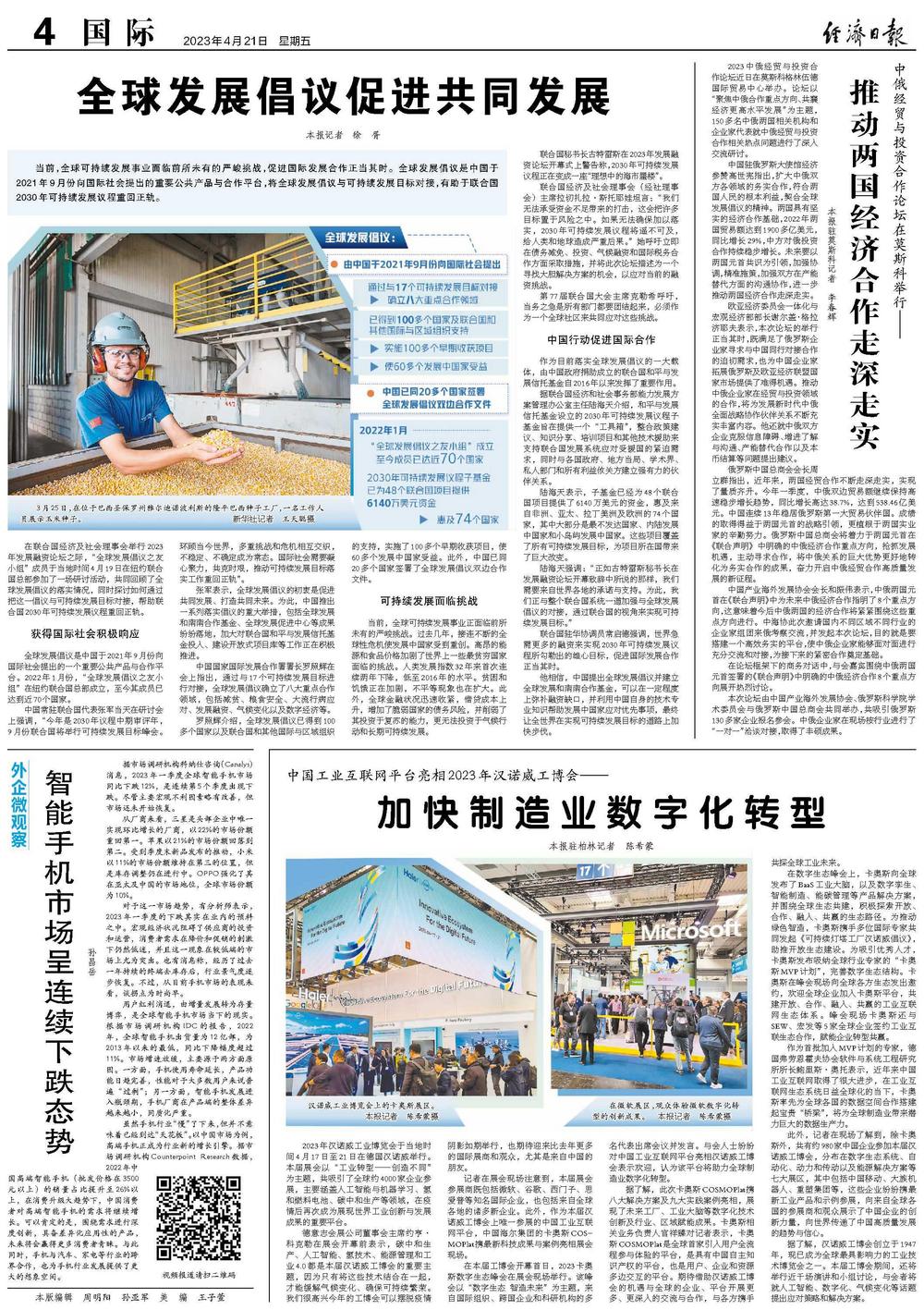 在本届工博会开幕首日,2023卡奥斯数字生态峰会在展会现场举行。该峰会以“数字生态 智造未来”为主题,来自国际组织、跨国企业和科研机构的多名代表出席会议并发言。与会人士纷纷对中国工业互联网平台亮相汉诺威工博会表示欢迎,认为该平台将助力全球制造业数字化转型。