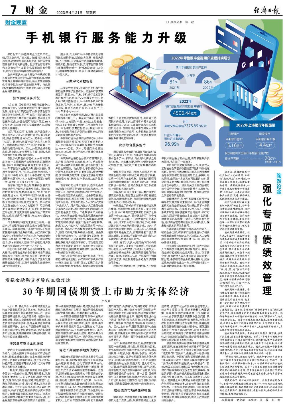 从实际效果来看,升级后的手机银行给银行经营带来了显著成效。交通银行披露数据显示,截至2022年末,手机银行月度活跃客户数为4548.33万户,全年增长19.35%;光大银行统计数据显示,2022年末手机银行缴费直联用户为1.53亿户,比2021年末增长44.91%;直联月活用户为2140.41万户,比2021年末增长20.35%。