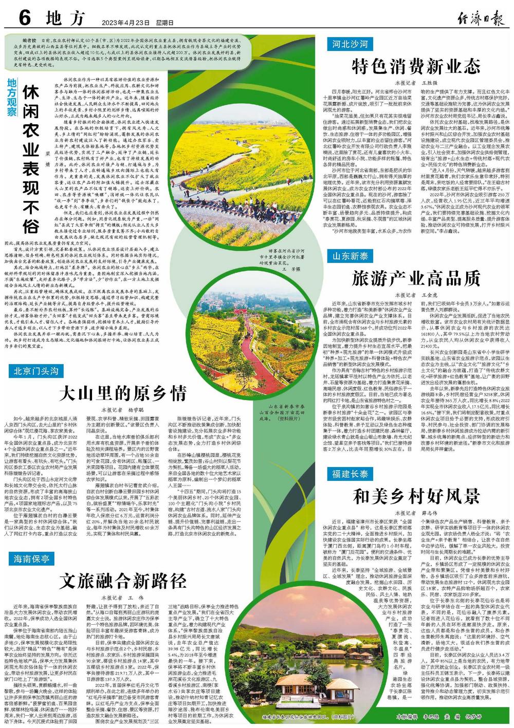 沙河市位于河北省南部,东部是肥沃的华北平原,西部是巍巍太行山,拥有得天独厚的地理优势。近年来,该市充分利用资源禀赋发展休闲农业,成为农业农村部公布的2022年全国休闲农业重点县。现在的沙河,游客除了可以在红薯岭看花,还能到红石沟摘草莓、泽丰生态园钓鱼、农耕馆参观农具。农业业态不断丰富、场景趋向多元、品质持续提升,构成“春赏花、夏游园、秋采摘、冬观雪”的区域休闲农业发展新格局。