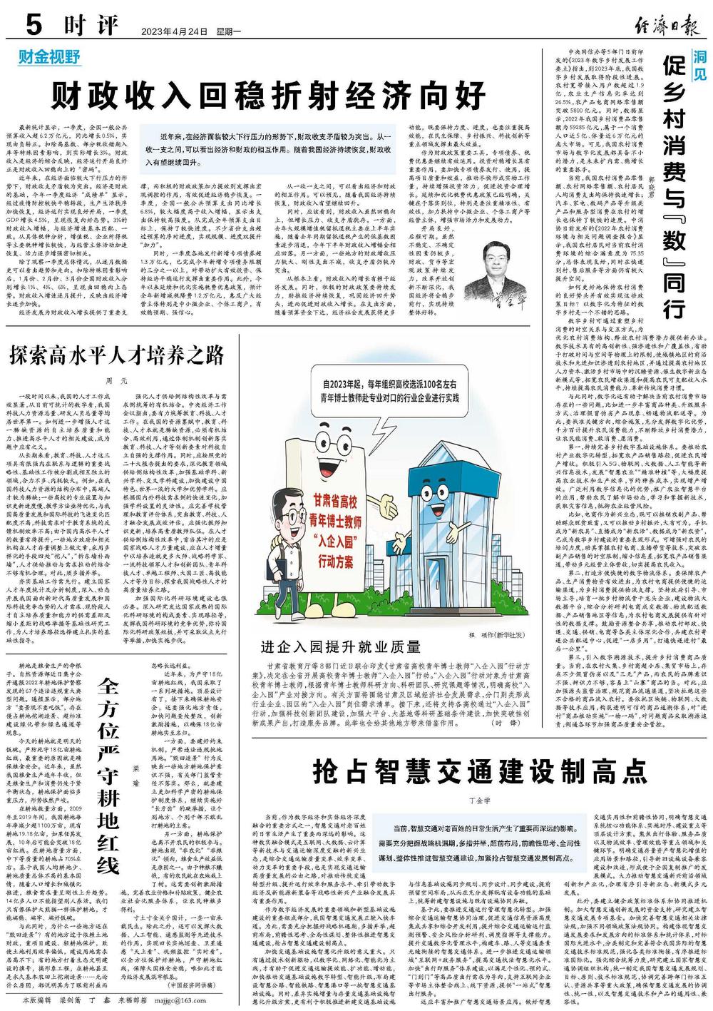从根本上看,财政收入的增长有赖于经济发展。同时,积极的财政政策要持续发力,助推经济持续恢复,巩固经济回升势头,进而促进财政收入增长。在支出方面,随着预算资金下达,经济社会发展获得更多动能,既要保持力度、进度,也要注重提高效能,在民生保障、乡村振兴、科技创新等重点领域发挥出最大效益。