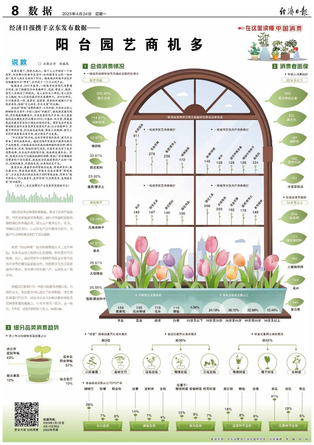 “阳台农场”的兴起,也为育种育苗和农资、园艺企业带来了新的发展机会。通过为城市家庭用户提供定制化产品和服务,不断推出适合家庭环境种植的新品种,孵化各种安全、实用、智能的园艺用品,让城市居民有了更多消费选择,企业也实现转型升级,迎来新发展机会。同时,电商企业也可以通过数据的洞察,帮助厂家准确捕捉消费者的个性化需求,推出适合家庭场景的产品和一体化、定制化服务,并提供交流、分享的社交平台。