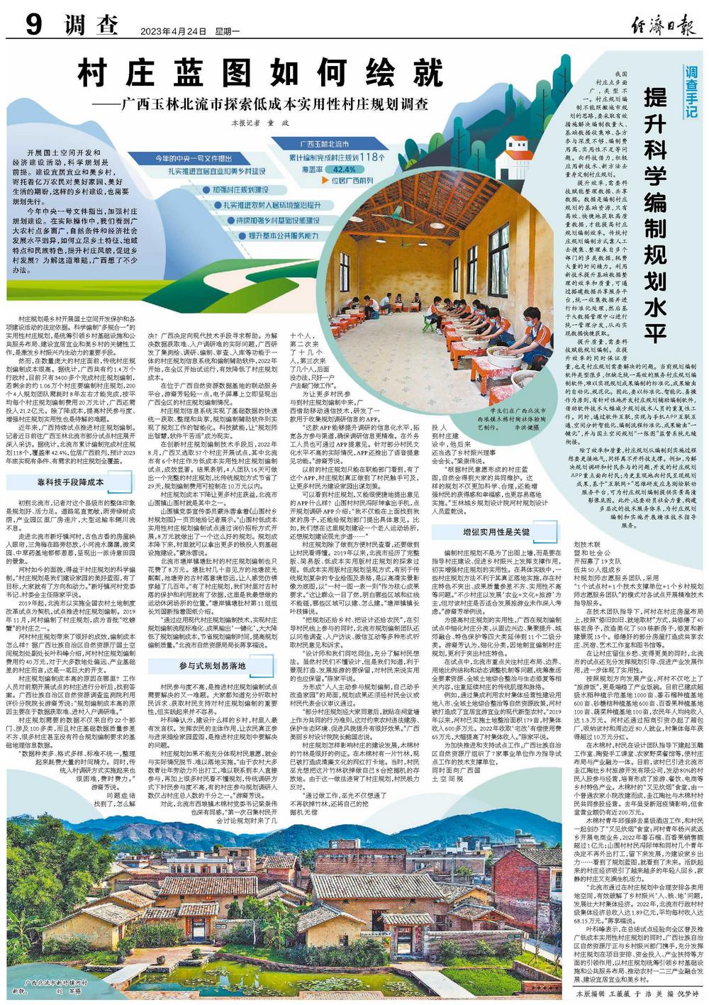 叶科峰表示,在总结试点经验向全区普及推广低成本实用性村庄规划的同时,广西壮族自治区自然资源厅正与乡村振兴部门携手,充分发挥村庄规划在项目安排、资金投入、产业扶持等方面的引领作用,以村庄规划统筹引领乡村基础设施和公共服务布局、推动农村一二三产业融合发展、建设宜居宜业和美乡村。