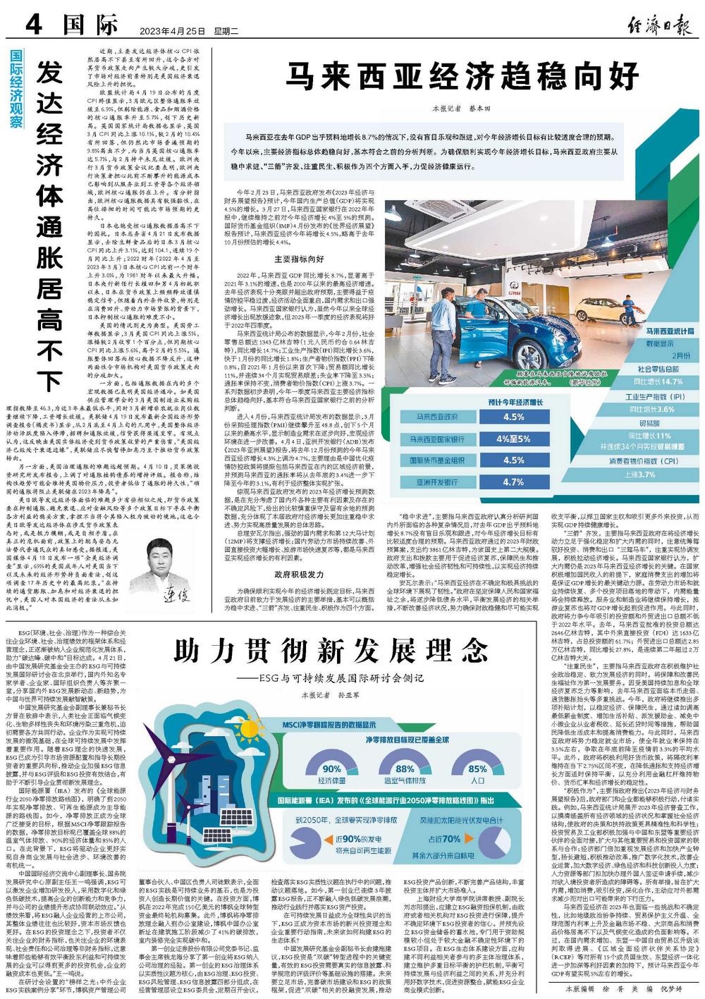 今年2月23日,马来西亚政府发布《2023年经济与财务展望报告》预计,今年国内生产总值(GDP)将实现4.5%的增长。3月27日,马来西亚国家银行在2022年年报中,继续维持之前对今年经济增长4%至5%的预测。国际货币基金组织(IMF)4月份发布的《世界经济展望》报告预计,马来西亚经济今年将增长4.5%,略高于去年10月份预估的增长4.4%。
