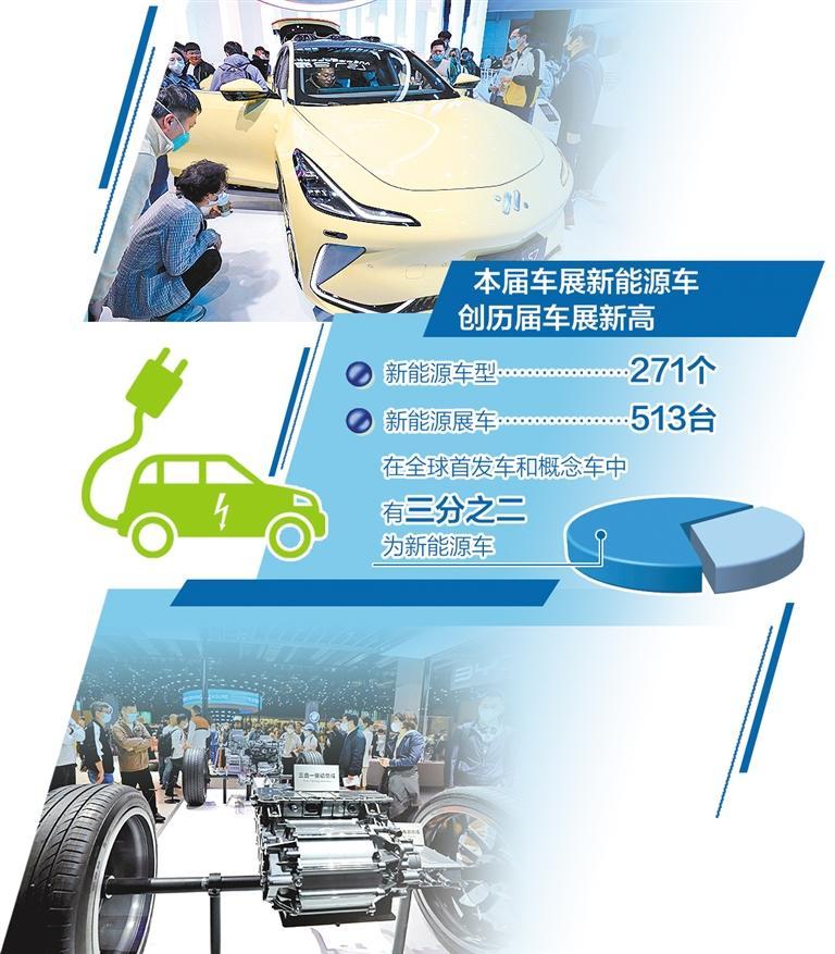 值得关注的是,本届车展不仅新能源车型达到271个,新能源展车513台,创历届车展新高,而且在全球首发车和概念车中,有三分之二为新能源车。这意味着,新能源首发车和概念车首次超越传统燃油车,成为上海车展当仁不让的主角。