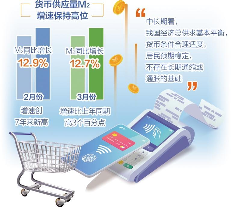 一季度数据显示,我国3月份CPI同比增长0.7%,低于市场预期的1%,较上月增速回落0.3个百分点,核心CPI同比增长0.7%,连续12个月小于或等于1%;PPI同比下降2.5%,环比持平,低于市场预期的2.3%,跌幅连续3个月扩大。与此同时,货币供应量M_2增速保持高位。2月末,M_2同比增长12.9%,增速创7年来新高;3月末M_2同比增长12.7%,增速比上年同期高3个百分点。