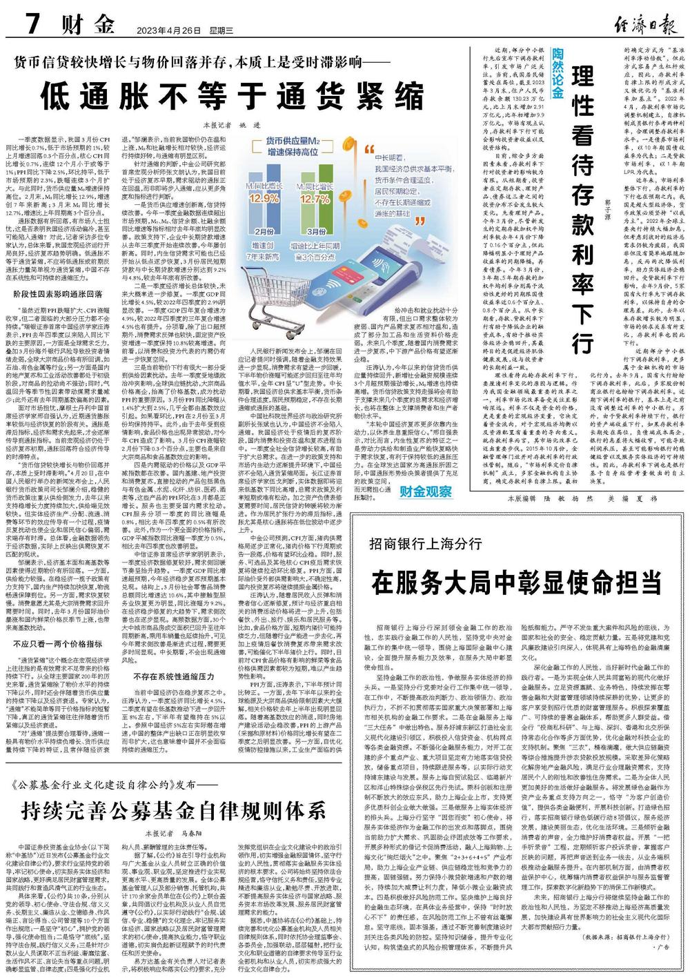 近期,部分中小银行先后宣布下调存款利率,引发市场广泛关注。当前,我国居民储蓄处在高位,截至2023年3月末,住户人民币存款余额130.23万亿元,比上月末增加2.91万亿元,比年初增加9.9万亿元。市场有观点认为,存款利率下行可能会影响投资者收益以及投资结构。