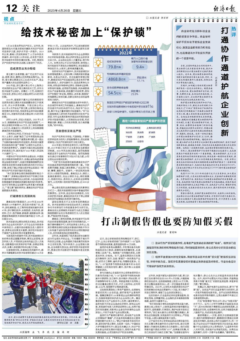 4月26日是世界知识产权日。近年来,我国持续加大对重点领域关键技术知识产权的司法保护力度,保护水平进一步提升。2019年以来,最高人民法院审结了1.2万余件技术类案件,其中包括119件纠纷,还有若干涉及技术秘密的专利权权属纠纷等。日前,围绕知识产权保护相关热点话题,记者进行了采访。
