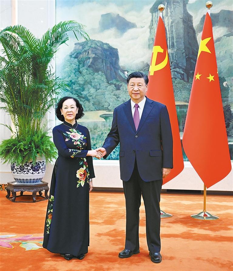 新华社北京4月26日电 4月26日,中共中央总书记、国家主席习近平在人民大会堂会见越共中央政治局委员、中央书记处常务书记、中组部部长张氏梅。
