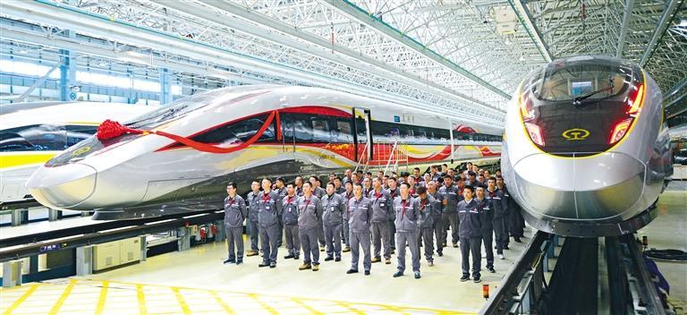 4月26日,复兴号智能动车组在长春中车长客股份公司下线,将投入济南到青岛高铁的客运服务。该动车组在16个方面增加了配置,具有科技智能、节能环保、安全舒适等特点。
