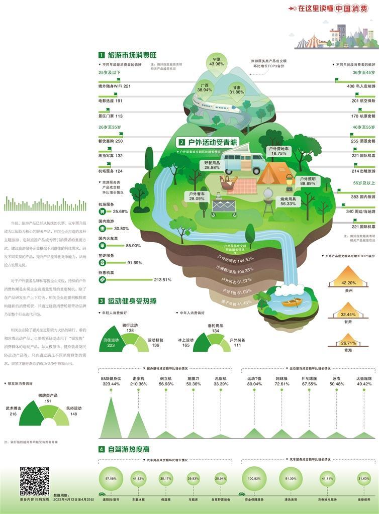消费者假期出行旅游的偏好发生明显变化。首先,消费者更加注重以体验为核心的服务产品,亲子、敬老、旅拍等为代表的定制旅游成为商家吸引消费者的重要产品。其次,休闲旅游方式越来越受欢迎,大部分游客已告别“下车拍照、上车睡觉”的旅游方式,他们对旅游目的地的特色、环境、服务提出了更高要求。最后,短途游和户外游持续火爆,助推了户外产品的普及。