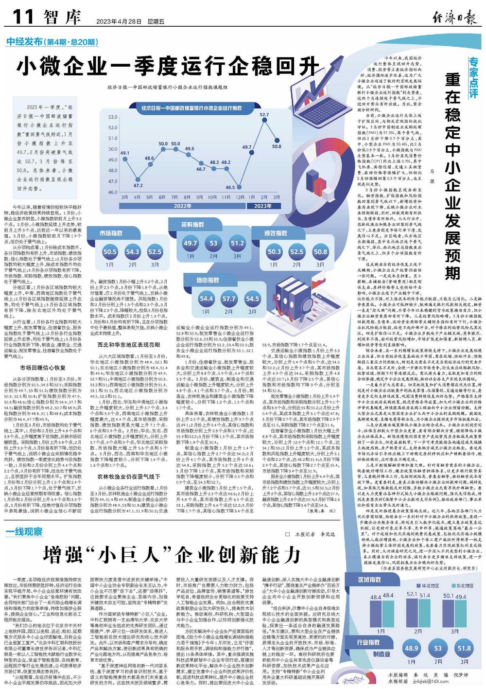 今年以来,我国经济运行整体呈现回升态势,消费、投资等主要经济指标向好,经济循环逐步改善,这为广大小微企业创造了较好的宏观发展环境。从“经济日报—中国邮政储蓄银行小微企业运行指数”的走势看,近两个月连续处于景气线之上,不过回升势头有所放缓。为此,需全面分析研判。
