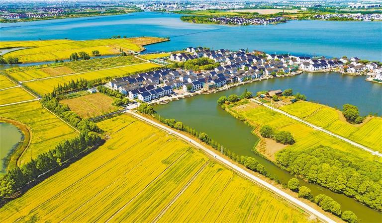 5月2日,俯瞰江苏省昆山市锦溪镇南部大片金黄色的麦田,麦浪重重,长势喜人。进入5月份,当地小麦陆续步入成熟期,丰收在望。