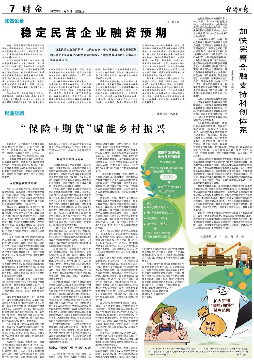 从“价格险”向“收入险”演化,正是当前“保险+期货”完善的一个重点。在调研中记者了解到,护航乡村产业,更多“保险+期货”的进化版本正在涌现。