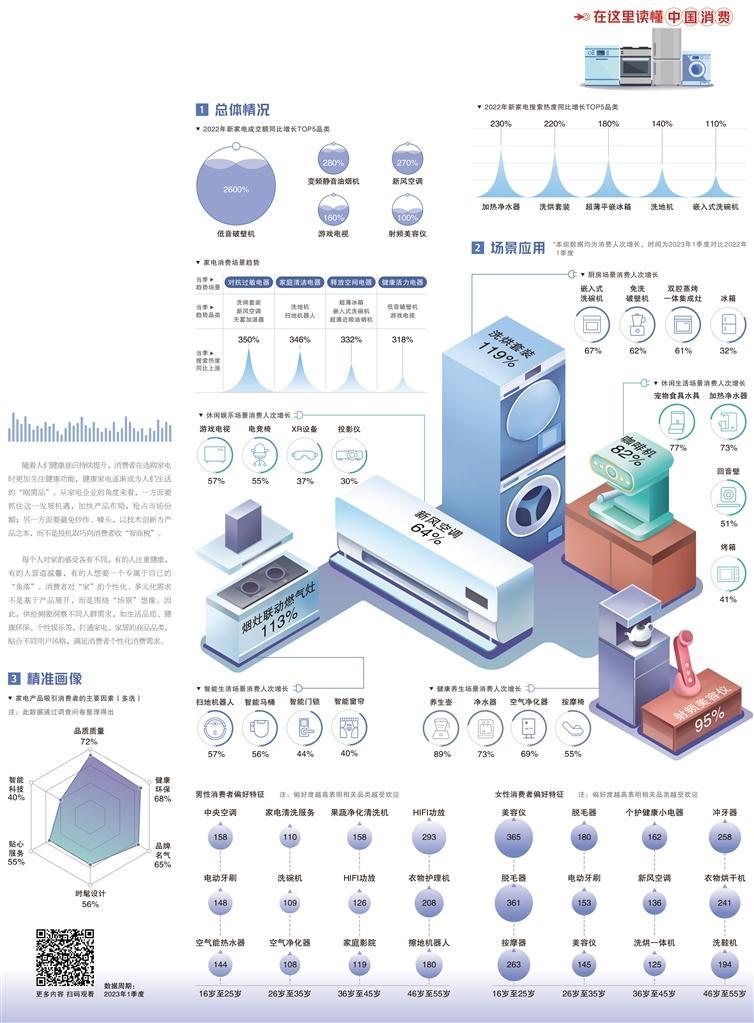 一方面,“居家消费场景”依然具有较大发展空间。从2020年“宅经济”第一次出现,到2022年“居家消费场景”引领家居家装一体化潮流,相关领域消费热度不减。家电企业要继续在相关产业布局上精耕细作,以消费者需求为导向,精准开发场景化产品,积极研发细分产品,于“红海”中开辟新“蓝海”。