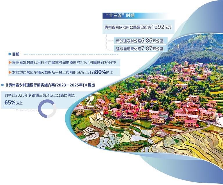 贵州省公路部门的数据显示,“十三五”时期,贵州省完成农村公路建设投资1292亿元,新改建农村公路6.86万公里、建成通组硬化路7.87万公里,2017年率先在西部地区实现建制村通硬化路、通客运,2019年又在西部地区率先实现30户以上自然村寨通硬化路。