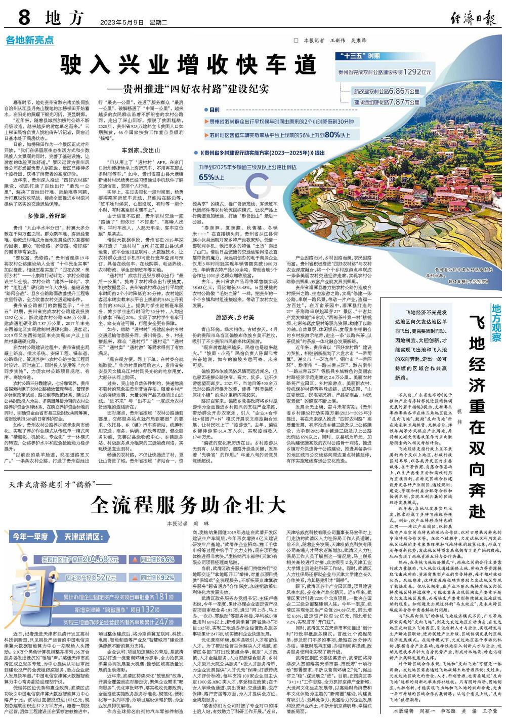产业因路而兴,乡村因路而美,农民因路而富。贵州省积极推进“四好农村路”与农村农业深度融合,将一个个乡村旅游点串联成一条条美丽农村交通经济走廊,实现农村公路修到哪里,致富产业就发展到哪里。