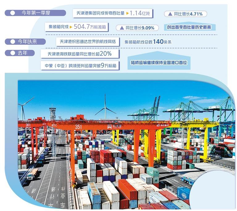 通过畅通海铁联运通道,今年以来,天津港集团积极拓展陆海双向物流网络,打造精品班列,推广“一单制”服务模式,拓展以港口为枢纽的全程物流服务,发布《海铁联运服务标准》,打造效率更高、成本更低、功能更强的多式联运物流体系,海铁联运保持高质量发展态势。