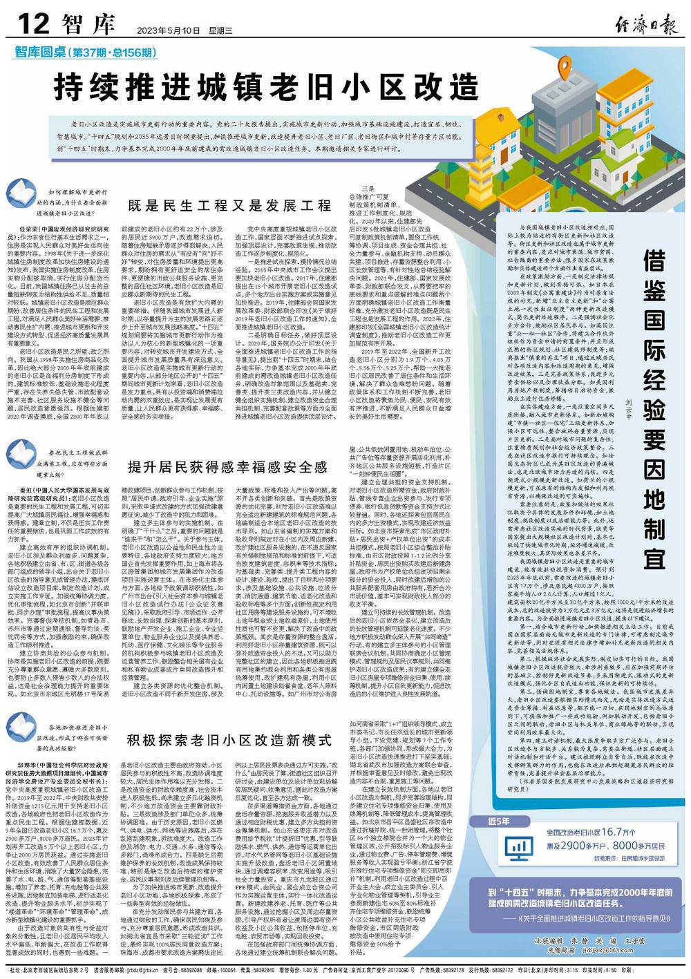 秦虹(中国人民大学国家发展与战略研究院高级研究员):老旧小区改造是重要的民生工程和发展工程,可切实提高广大城镇居民福祉,增强幸福感和获得感。建章立制,不仅是压实工作责任的重要做法,也是巩固工作成效的有力抓手。