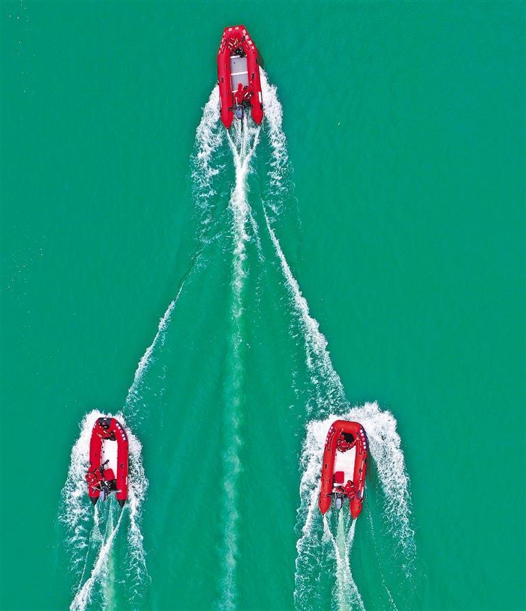 5月11日,浙江省台州市仙居县消防救援大队消防员在永安溪进行水上应急救援演练。仙居县消防救援大队、仙居县红十字水域搜救队通过舟艇编队、水面搜救等多科目联合演练,进一步提升灾害救援能力,培养多部门协同合作意识,确保汛期安全。