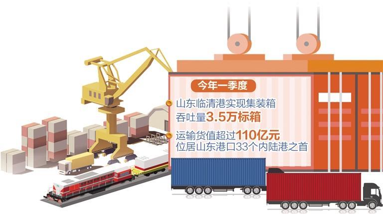 如今,昔日的鲁西内陆小港逐渐成长为沿黄流域第一大内陆港。今年一季度,临清港实现集装箱吞吐量3.5万标箱,同比增长3.9%,运输货值超过110亿元,位居山东港口33个内陆港之首,真正实现了把口岸港搬到家门口,让山东好品走出山东、走向世界。