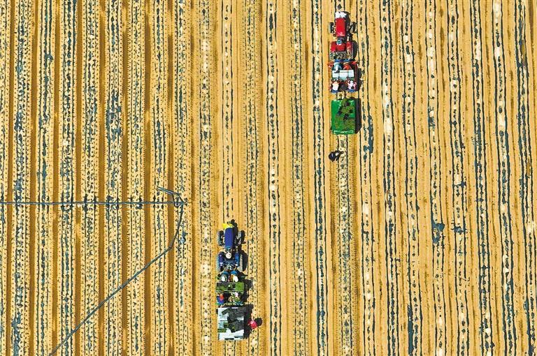 近日,甘肃省高台县南华镇智号村农户正在移栽辣椒苗。近年来,高台县依托地域优势,着力引导农民发展规模化、设施化蔬菜种植,健全完善产销一体化服务体系,形成多元发展格局。殷 旭摄(中经视觉)