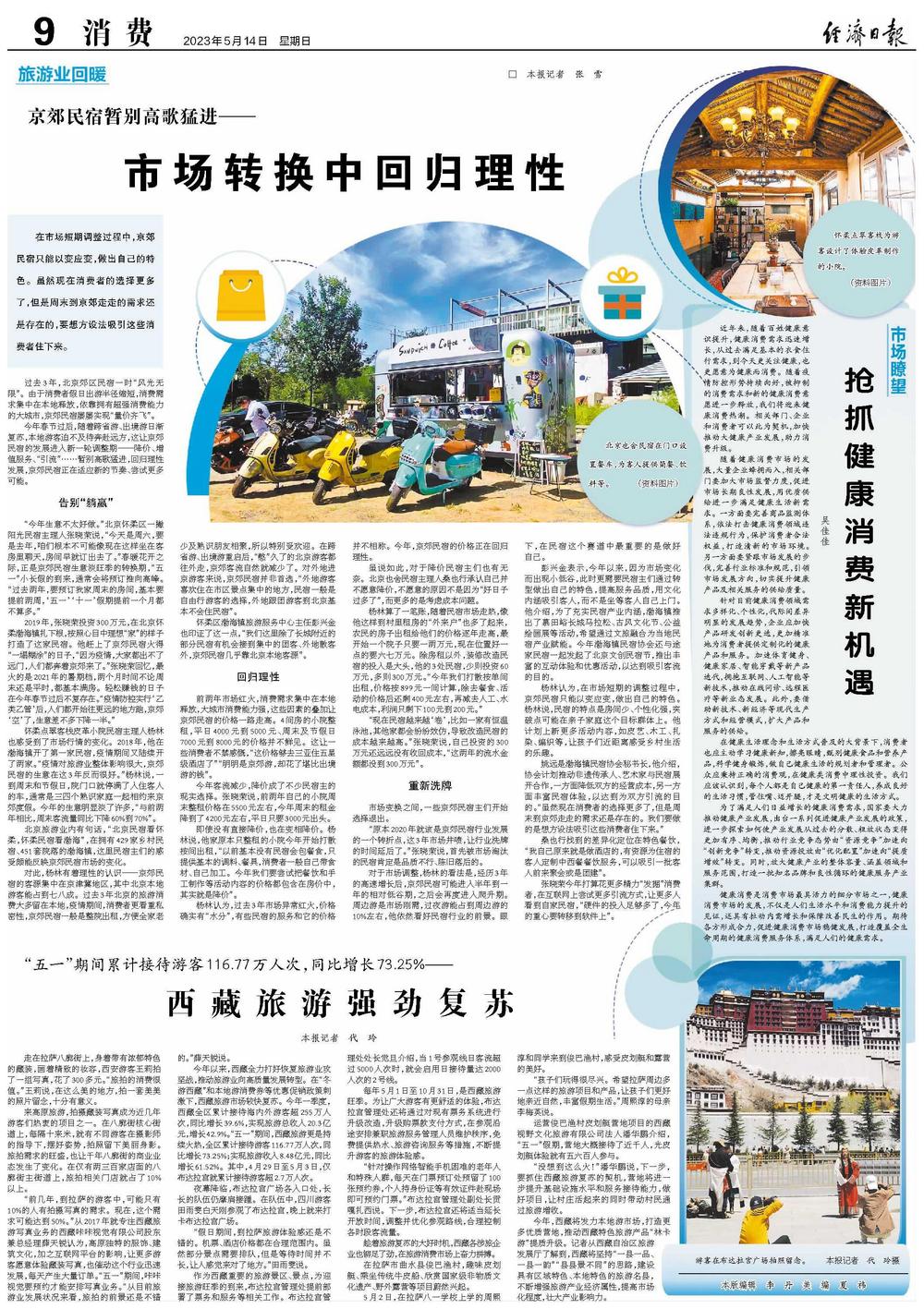 对此,杨林有着理性的认识——京郊民宿的客源集中在京津冀地区,其中北京本地游客能占到七八成。过去3年北京的旅游消费大多留在本地,疫情期间,消费者更看重私密性,京郊民宿一般是整院出租,方便全家老少及熟识朋友相聚,所以特别受欢迎。在跨省游、出境游重启后,“憋”久了的北京游客都往外走,京郊客流自然就减少了。对外地进京游客来说,京郊民宿并非首选,“外地游客喜欢住在市区景点集中的地方,民宿一般是自由行游客的选择,外地跟团游客到北京基本不会住民宿”。