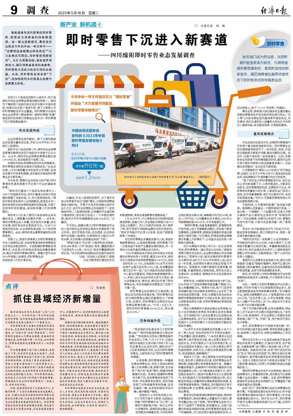 从表面看,即时零售是一种蓬勃发展的消费业态,实际上其深刻影响着人们的消费心理、购物习惯,充分培养了用户的“到家”需求,倒逼传统零售模式升级。在绵阳,随着即时零售的不断下沉,有的零售商享受到了早布局、早发展带来的便利,有的则感受到了这种倒逼带来的阵痛,还有的偏安一隅,在有限的服务半径内精心维护着客户黏性。