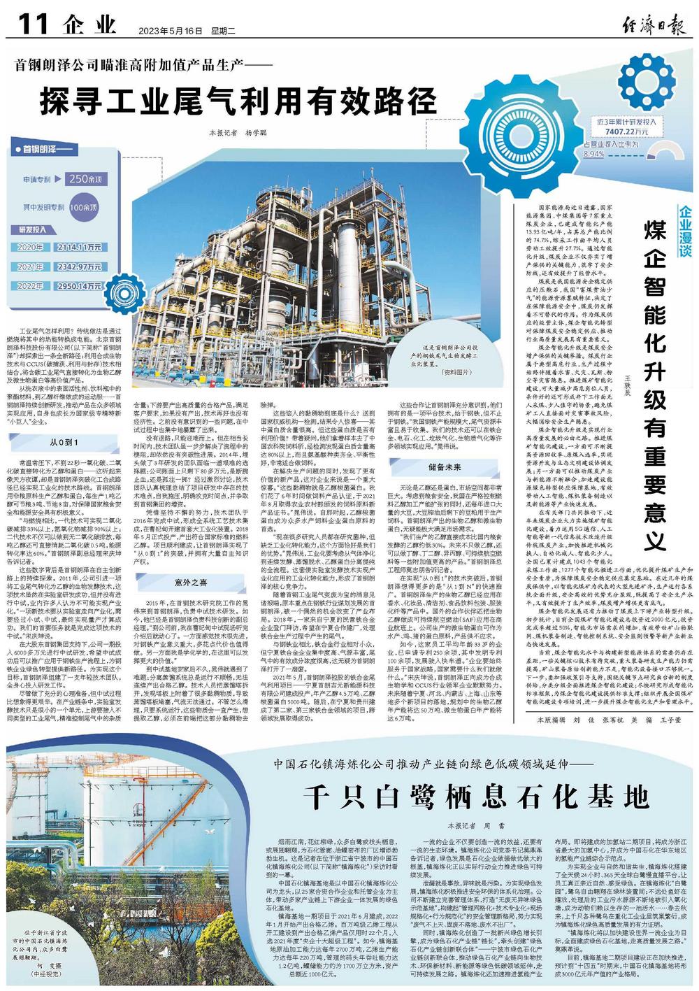 如今,这家员工平均年龄33岁的企业,已申请专利250余项,其中发明专利100余项,发展驶入快车道。“企业要始终服务于国家战略,国家需要什么我们就做什么。”宋庆坤说,首钢朗泽正向成为合成生物学和CCUS行业领军企业默默努力。未来随着宁夏、河北、内蒙古、上海、山东等地多个新项目的落地,规划中的生物乙醇年产能将达50万吨、微生物蛋白年产能将达6万吨。