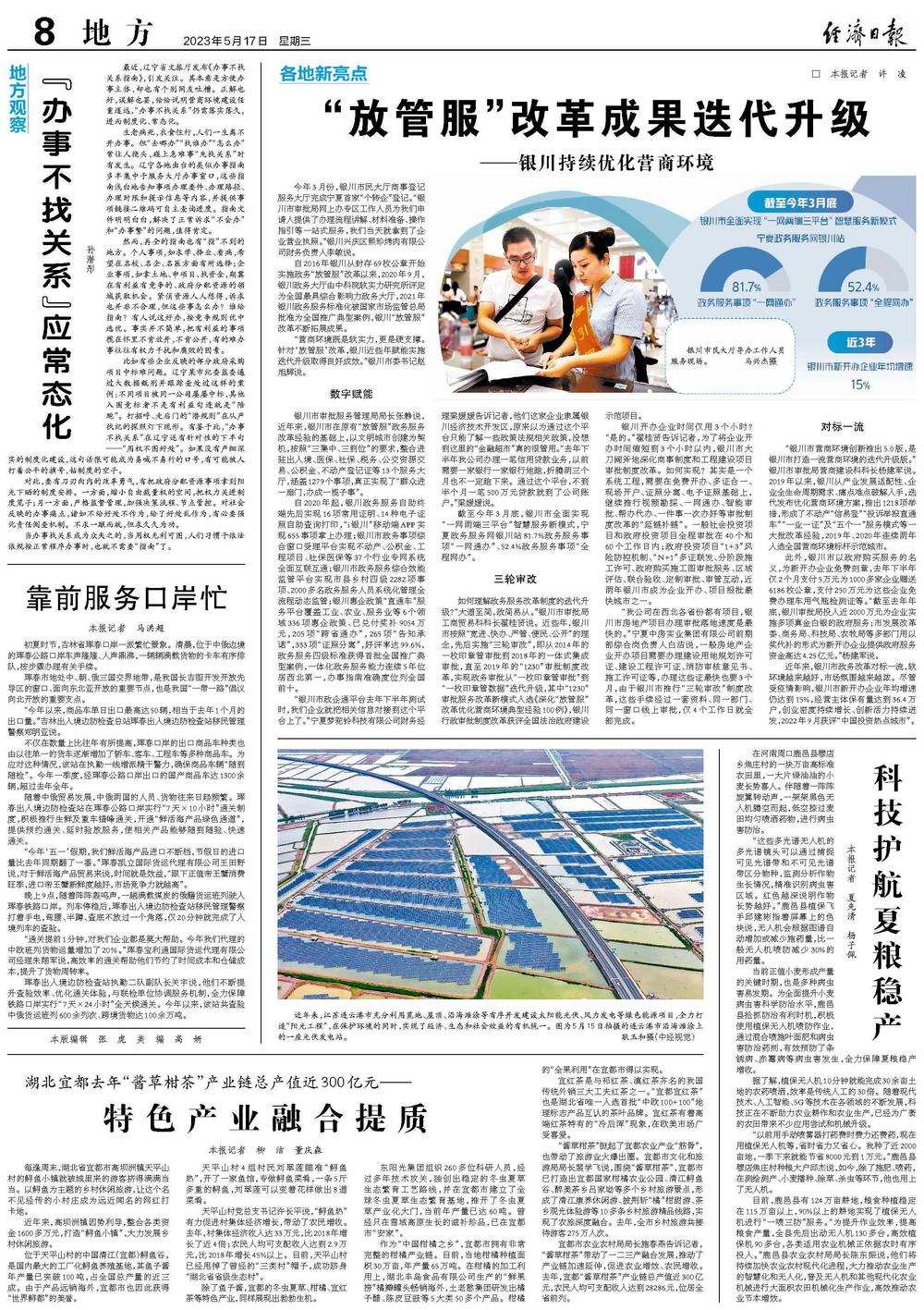 “营商环境既是软实力,更是硬支撑。针对‘放管服’改革,银川近些年赋能实施迭代升级取得良好成效。”银川市委书记赵旭辉说。