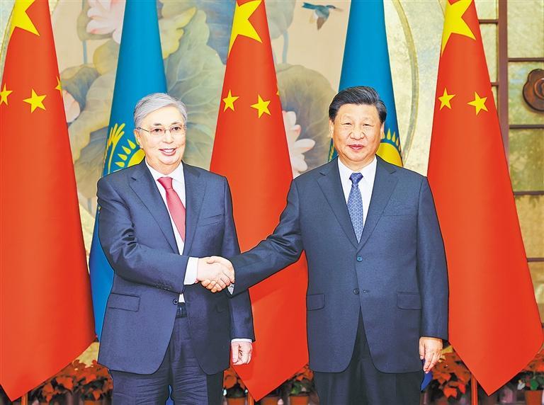 习近平指出,中哈是彼此值得信赖的好朋友、好兄弟、好伙伴。中国正在以中国式现代化全面推进中华民族伟大复兴,哈萨克斯坦正在建设快速发展、欣欣向荣的“新哈萨克斯坦”。中哈都处在发展振兴的关键阶段,中哈关系已经开启新的“黄金三十年”。双方要大力弘扬传统友好,坚定相互支持,密切发展战略对接,深化互利合作,共谋发展振兴,推动构建世代友好、高度互信、休戚与共的中哈命运共同体。