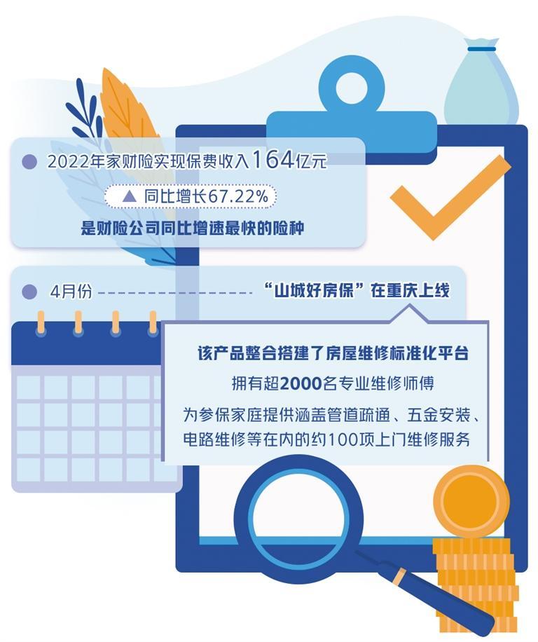 然而,一场前所未有的转机正在家财险市场悄然酝酿,一批以修代赔的维修服务型新家财险的出现,令财险行业泛起层层涟漪。中国银保监会披露的数据显示,2022年家财险实现保费收入164亿元,同比增长67.22%,是财险公司同比增速最快的险种。瑞士再保险前中国区总裁陈东辉也对服务型家财险寄予厚望:“去年,一些公司试水已经取得初步突破,家财险行业增速为过去十年最快。这是一条非常好的赛道。”