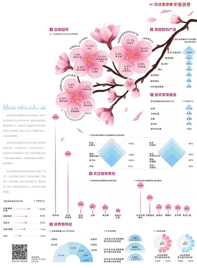 在收入水平提升及消费观念转变双重影响下,武汉消费者对潮流产品和智能产品需求持续增长,并越来越重视消费品质和消费体验,当地消费市场呈现出个性化、多元化和细分化升级趋势。
